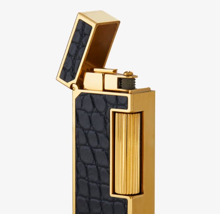 Dunhill Alligator Black Gold Plated Rollagas Lighter 01