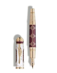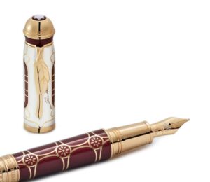 The Writers Edition pays tribute to Goethe’s genius through every detail. The precious lacquer of the cap and barrel is inspired by the marble described in his works, while the barrel ring engraving echoes the framing of a copperplate illustration from an early edition of The Sorrows of Young Werther. The shade and texture of the lacquer reflect the wallpaper in the Juno room of Goethe’s Weimar home, and the gold- and platinum-coated fittings reference decorative elements from the interior.