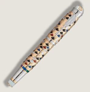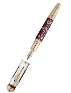 A delicate pattern of clover leaves engraved on the cap top originates from a letter Goethe wrote to Charlotte Buff, the model for Lotte in Werther, symbolizing the intertwining of his literary and personal life. The cap itself is crowned by the Montblanc emblem, representing Goethe’s vision of “world literature” — a universal literary dialogue transcending language, culture, and time.