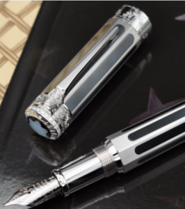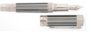 Crafted with meticulous precision, the fountain pen features an 18K solid white gold octagonal body enriched with hematite inlays, a stone traditionally believed to ease anxiety and enhance focus and memory—qualities associated with Adams himself. The pen is comparable in size to a Montblanc LeGrand 146 and uses a piston-filling mechanism.