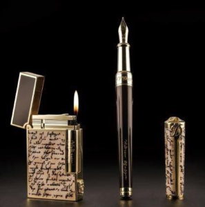 Helix L2 Lighter & Nèo-Classique Pens / Bronze with yellow gold or rhodium finishes Drawn to the shapes and textures of old master paintings and