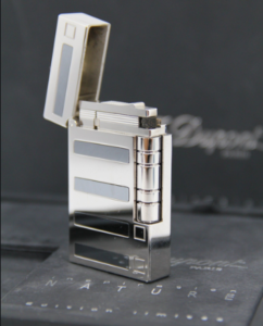 60th Anniversary Limited Lighters Precise lines interwine, criss cross and leave an exquisite trail in their wake on the platinum. Large squares of polished metal,