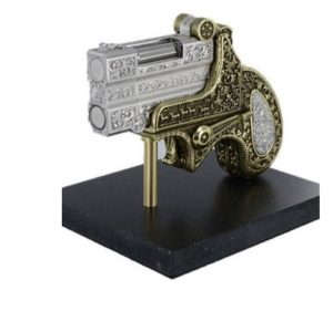 2 Saints Cowboy Ultra Exclusive Ligne2 Lighter / 016939 Lighter Stand fashioned from bronze with yellow gold color patina and black marble base Lighter fashioned