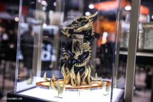 5 Clawed Dragon Lighter / 016797 Dragon Body: Russian Obsidian stone Dragon Fittings: Gold Vermeil Base Stand: Made from a block of Agate (Brazil) Ligne