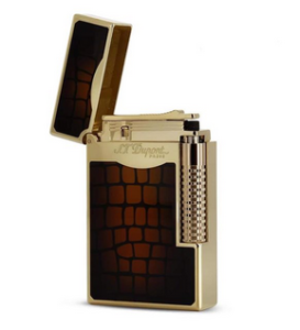 Croco Dandy Le Grand Lighter / 23024 Brown natural lacquer/Yellow gold-plated Crocodile pattern design S.T. Dupont logo engraving on the front and bottom Hand-crafted in