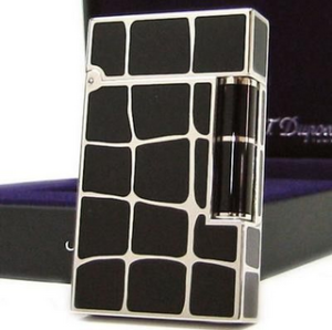 Lign 2 Lighter/ 16724 Black Chinese Lacquer and Palladium Crocodile Pattern S.T. Dupont signature logo engraved on the base This S.T. Dupont Ligne 2 Lighter has