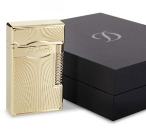 Le Grand Lighter/Goldsmith Yellow/ 023017 Elegant design made of yellow gold with stripes in sun optics Double “dancing” soft flame moves S.T. Dupont logo engraving